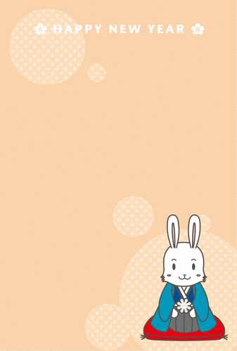| そのまま縁なし印刷をするだけで年賀状になる便利なテンプレートです。羽織袴を着たうさぎが座って新年のご挨拶をしています。 |